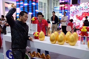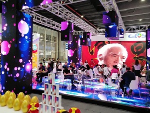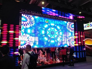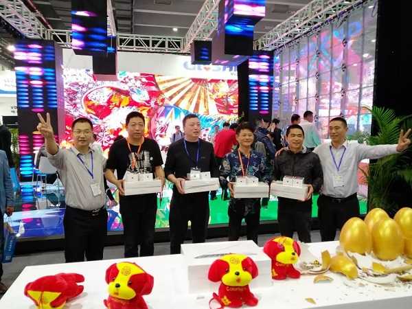 光祥科技絢麗奪目的是極具特色的造型顯示屏,包括ZM3.91異形屏和紅點設(shè)計大獎產(chǎn)品MV2.97高端室內(nèi)租賃屏,綻放春晚貴州分會場的黑燈高亮MX4.81顯示屏,國內(nèi)首次亮相的LC系列透明屏。但人山人海的光祥展位最最吸引眼球的還是Gloshine新年鉅惠大派送,“訂單有禮,金蛋有喜”的火爆活動。