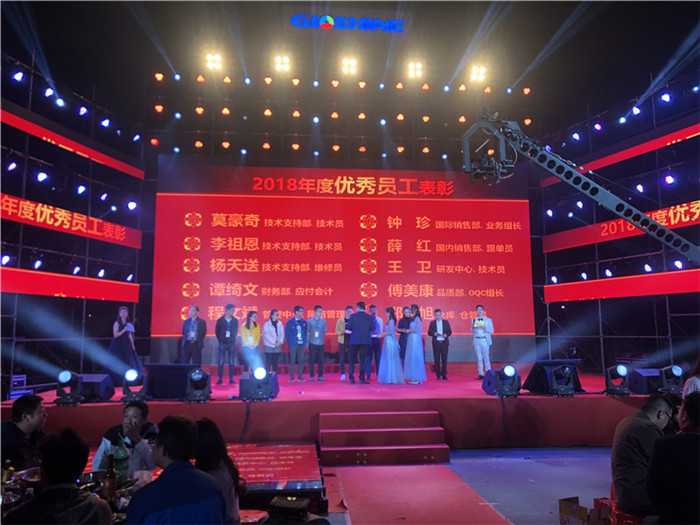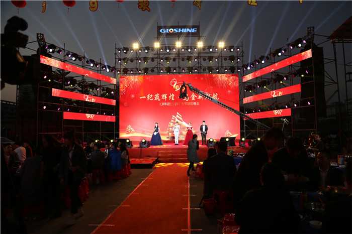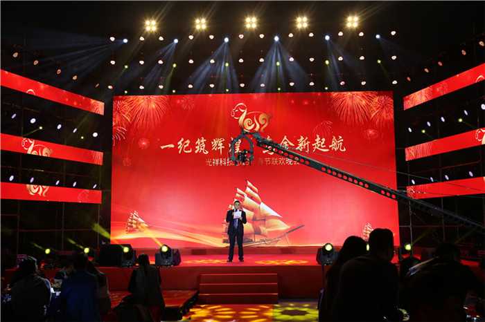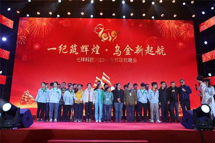 2019年1月24日深圳市光祥科技股份有限公司“一紀筑輝煌 烏金新啟航”年會盛典在公司廠區舉行。年會上,全體員工和供應商、合作伙伴聚集一堂共享盛典。