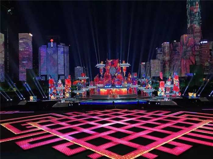展位現場最大面積的顯示屏莫過于明星產品---AR系列顯示屏,它是專門為2019年春節聯歡晚會而設計的一款全新舞臺地磚顯示屏。在春晚深圳分會場上,3100方 AR4.81地磚顯示屏,擬化出巨大中國結和超大陣容的矩陣組合,將深圳會場的宏偉氣勢展現得淋漓盡致。