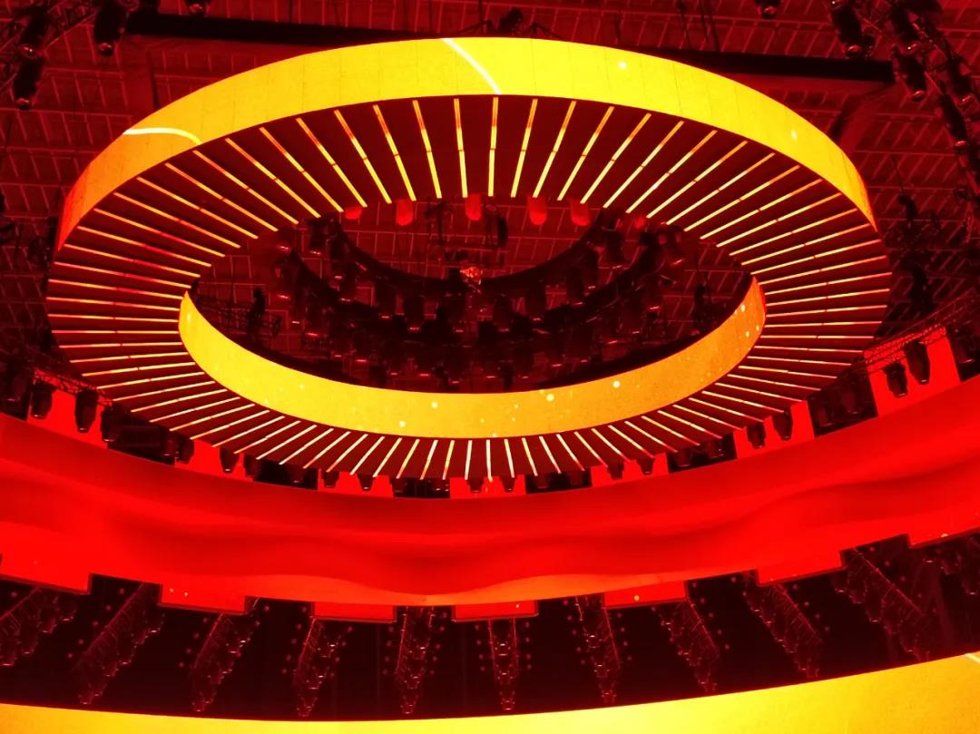 舞臺上方圓環使用光祥 ZM 3.91 系列,隨節目不斷變化主題,顯示屏的視覺效果搭配舞臺表演,使舞臺更加豐滿的同時,為演出提供了更多元的視覺變化。作為一款專業的舞美產品,ZM強大的功能,幾乎能滿足舞臺所有要求,所以數次出現在春晚、跨年等大型活動里。