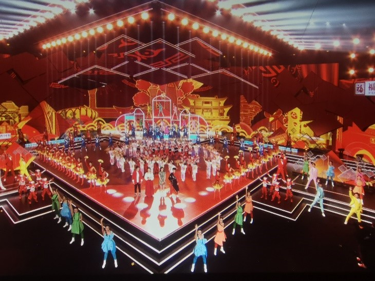 晚會大屏使用Zebra 3.91 系列、AR 4.81 系列和TK 系列,流暢的畫面顯示和多元化的大屏造型,配合虛擬技術的實時拍攝,延伸了“宮燈舞臺”的設計,同時又突破舞臺的界限。