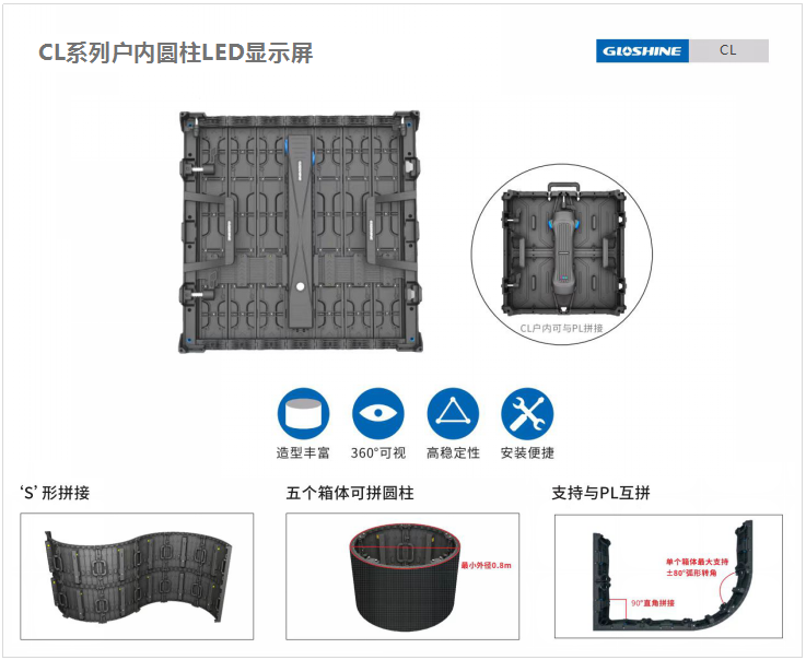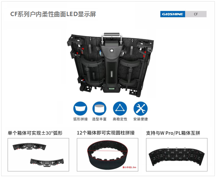 本次粵港澳大灣區車展上,光祥各系列LED顯示屏各顯神通,應用產品涵蓋VA系列透明屏、PL系列戶內高清屏、CL系列圓柱屏、CF系列柔性曲面屏、CB系列高清屏等,造型百變、創意無限。