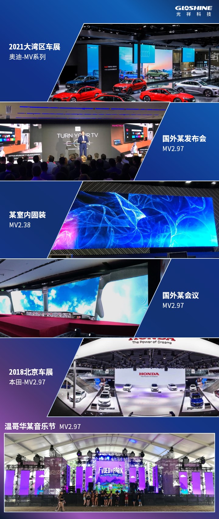 除了用于舞臺、虛擬攝影、大型會議、展會、廣電演播等可移動場景,MV系列也應用于室內固裝場景,如會議室、K歌房、指揮中心、高端商顯等。