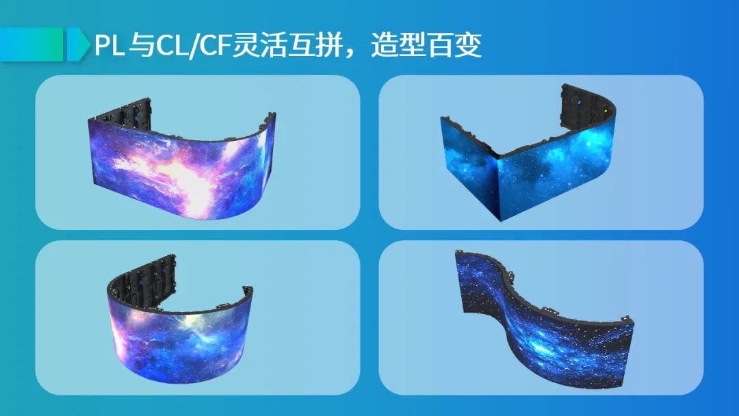 光祥PL+CF系列是“常規顯示屏+異形顯示屏”的創新結合,自推出就收到好評不斷。打破常規顯示屏的限制,可做與眾不同的拼接造型,滿足各類場景下的不同需求。
