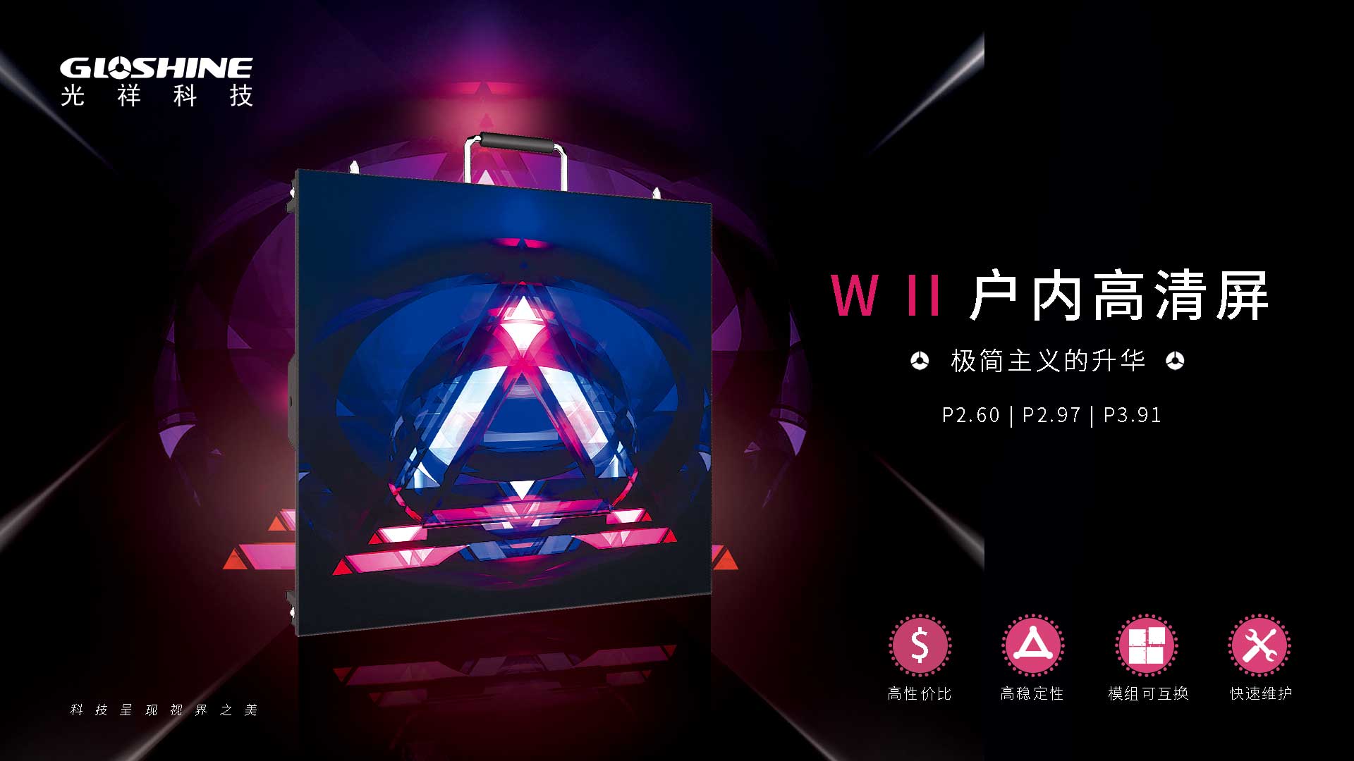 全高14米、底高4米、寬62米的大屏由光祥品牌W II系列戶內(nèi)高清LED顯示屏拼接而成。該系列以極致色彩還原、超輕、超高強度、超高性價比著稱,自2020年問世以來便廣泛應(yīng)用于車展、廣電演播、重要晚會、大型會議、論壇、發(fā)布會等。