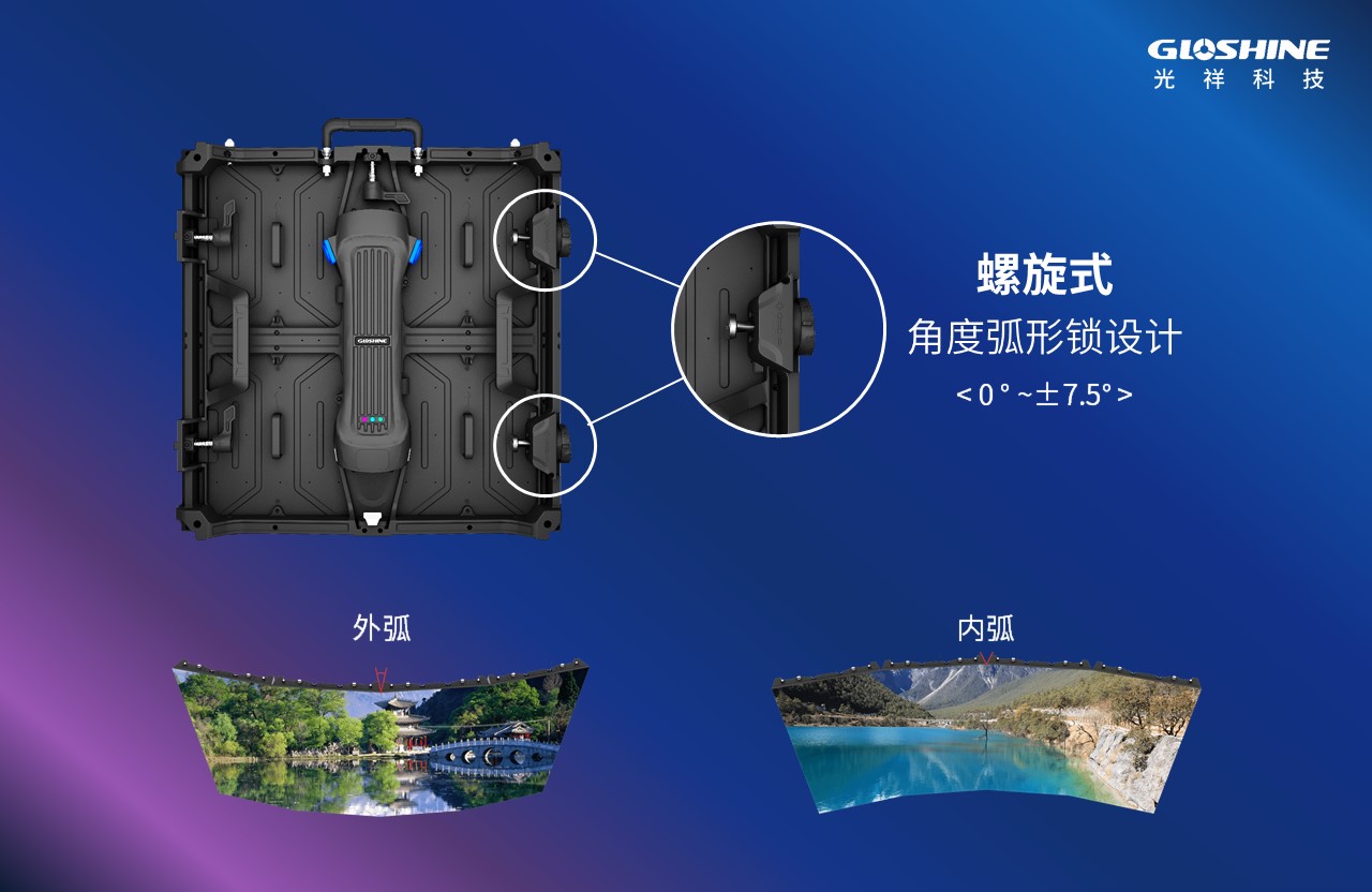 PL系列箱體有著上下兩個獨特的螺旋式角度弧形鎖,每旋轉一次實現2.5°內外弧調節,單向三次撥動實現最大±7.5°造型,使用拉桿結構進行鎖定。