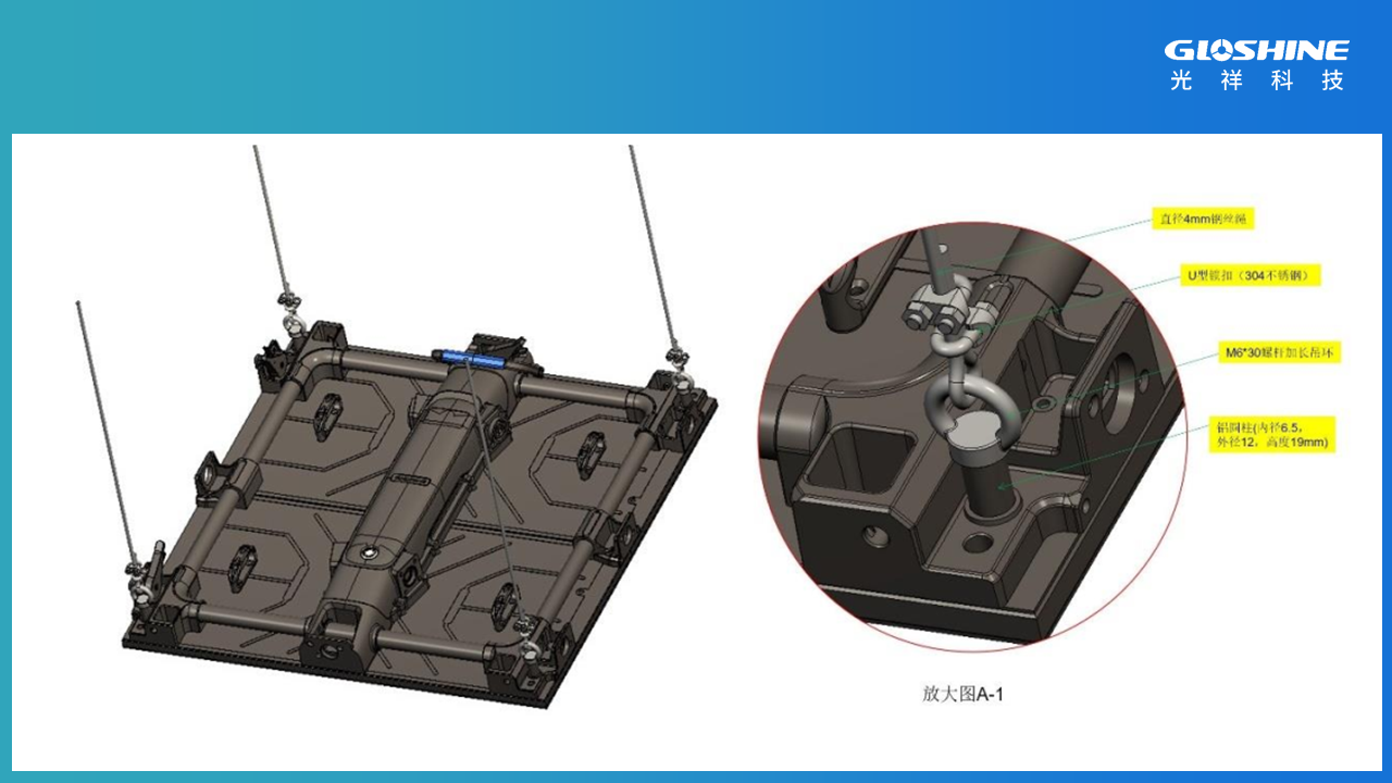 箱體四角配置活動連接鉸鏈,連接數控升降線纜,可進行升降、俯仰、傾斜動作,應場景需要塑造不同造型。