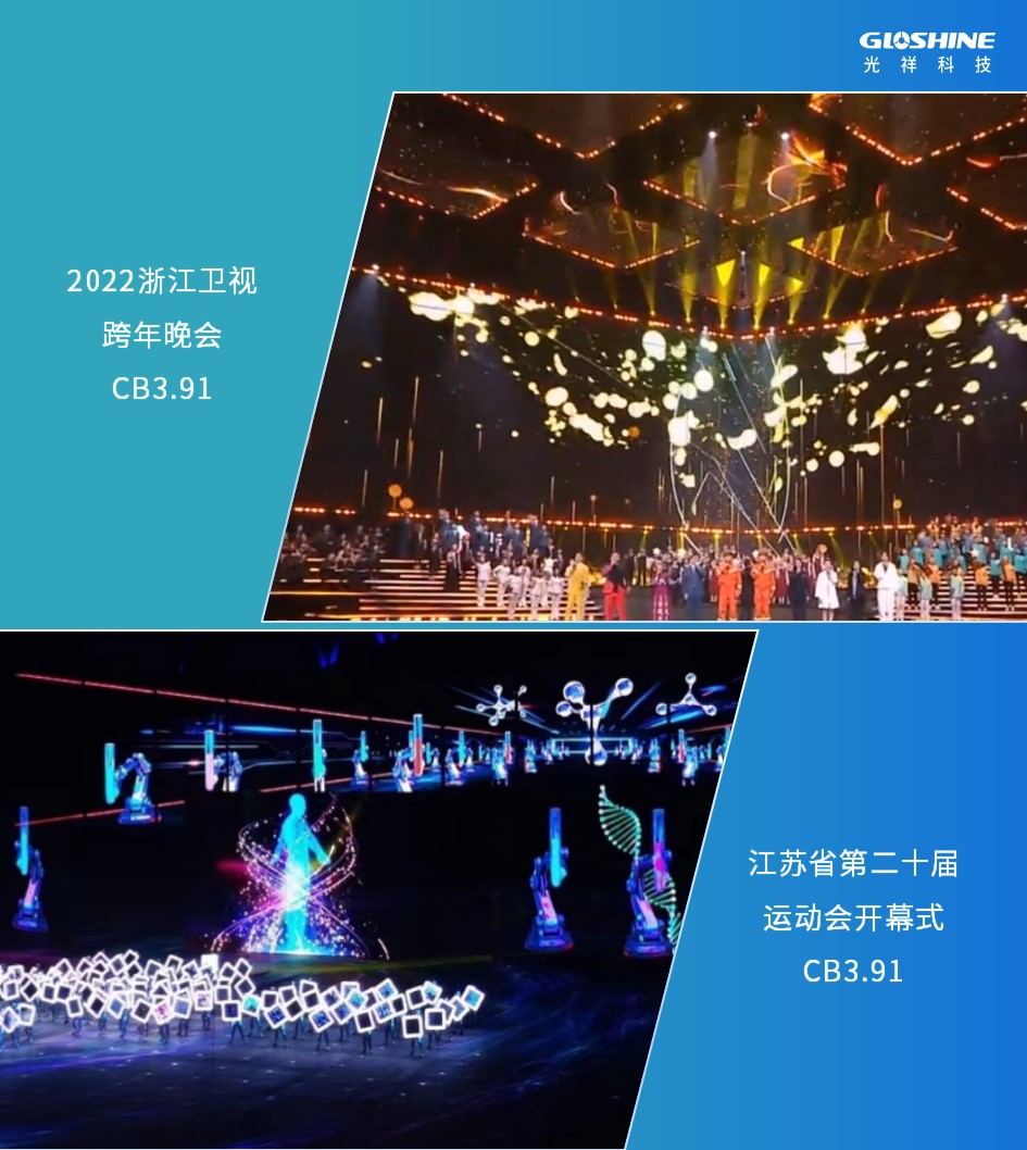 光祥CB系列高清屏以輕薄著稱,常應用于舞臺空中造型,如2021年央視春晚舞臺及2022浙江衛視跨年晚會、江蘇省第20屆運動會等。