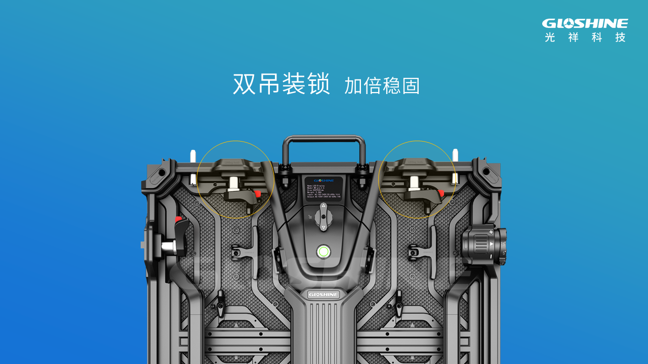 光祥MV Pro系列戶內高清LED顯示屏繼承MV系列高端箱體設計,每個箱體各有一對全鋼芯螺旋式弧形鎖、吊裝鎖、彈簧拉緊機構,高效拼裝、雙重穩固,并有效減少拼裝縫隙,表面銜接更平整,畫面視覺更流暢。