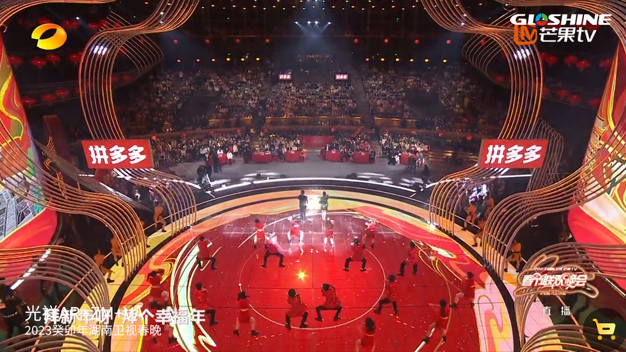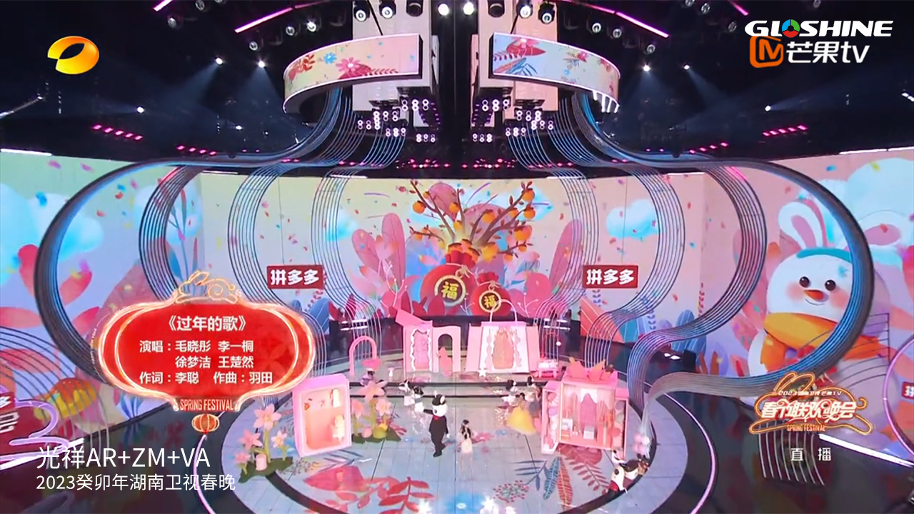 朝氣蓬勃的芒果TV在小年夜給全國人民奉獻了最是喜氣洋洋、星光熠熠的春節慶典,應用了光祥AR系列地磚屏、VA系列透明屏、ZM系列高清屏,共近1500平方米。