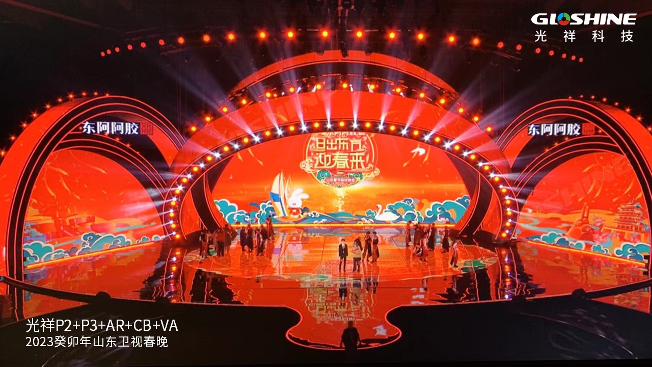 2023山東春晚以“日出東方迎春來”為主題,在威海13500平米展廳內搭建了360度環繞的超大舞臺,應用近1500平米光祥大屏和地屏,融合科技、時尚、山東特色文化元素,打造極其震撼、精彩的音視覺體驗。