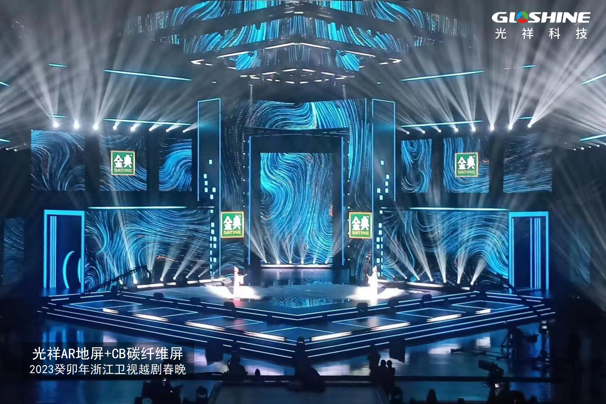 浙江衛視2023越劇春晚以“越歌春韻美好中國”為主題,應用光祥AR系列地磚屏、CB系列碳纖維高清屏塑造高大闊氣宮門牌坊樣式舞臺造型,以中國腔調彰顯文化自信,以青春活力注解詩畫越韻。