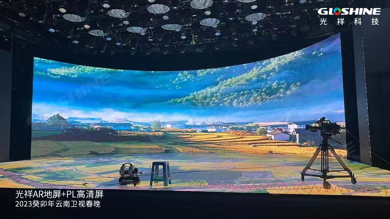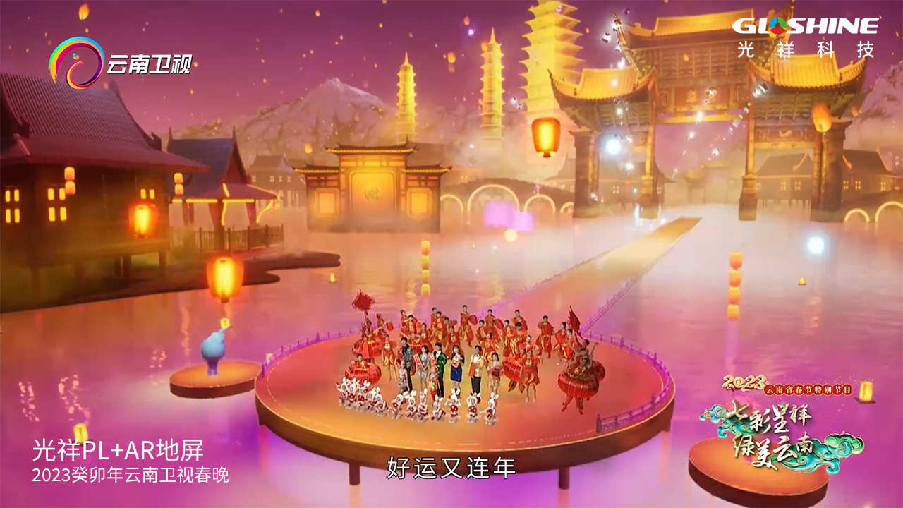 云南衛視春晚以光祥AR系列地磚屏和PL系列高清屏打造虛擬攝影舞臺,主持人與歌星、演員在舞臺上,如同拍攝影視劇般,演繹超時空故事大片。