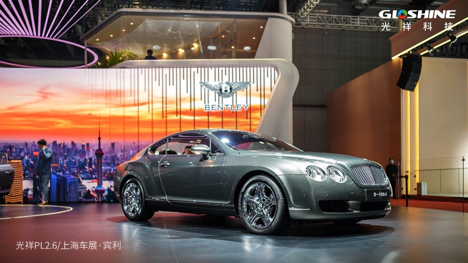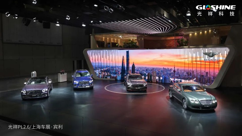 在豪車云集的國家會展中心(上海)8.1號館,賓利汽車以其標志性雄鷹展翅形狀塑造顯示大屏,借助光祥PL系列戶內高清屏展示翱翔高空、俯瞰日出東方照耀上海全域的極美景致。