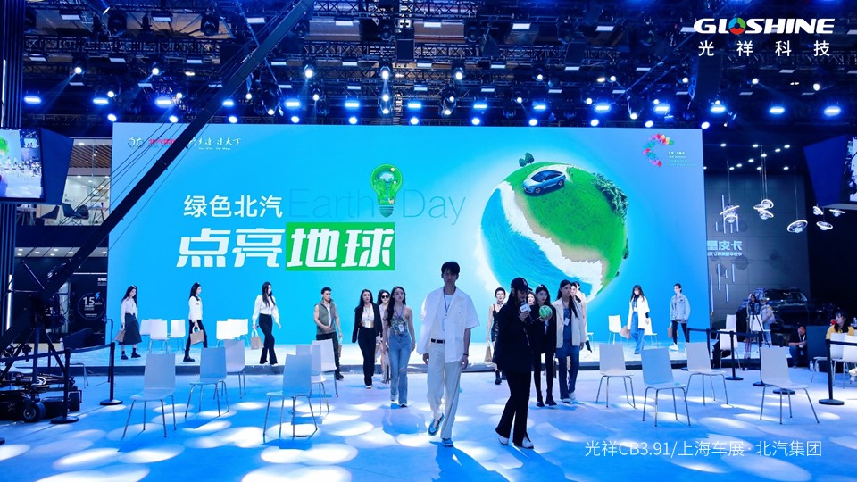 位于4.1號館C位展臺的北汽集團,人潮涌動,以“綠色北汽”為主題,倡導新能源汽車綠色出行,奉行造車“長期主義”。現場通過光祥CB系列碳纖維大屏和時尚走秀,展現多款新車及綠色時尚理念,多處大屏各司其職互不干擾。