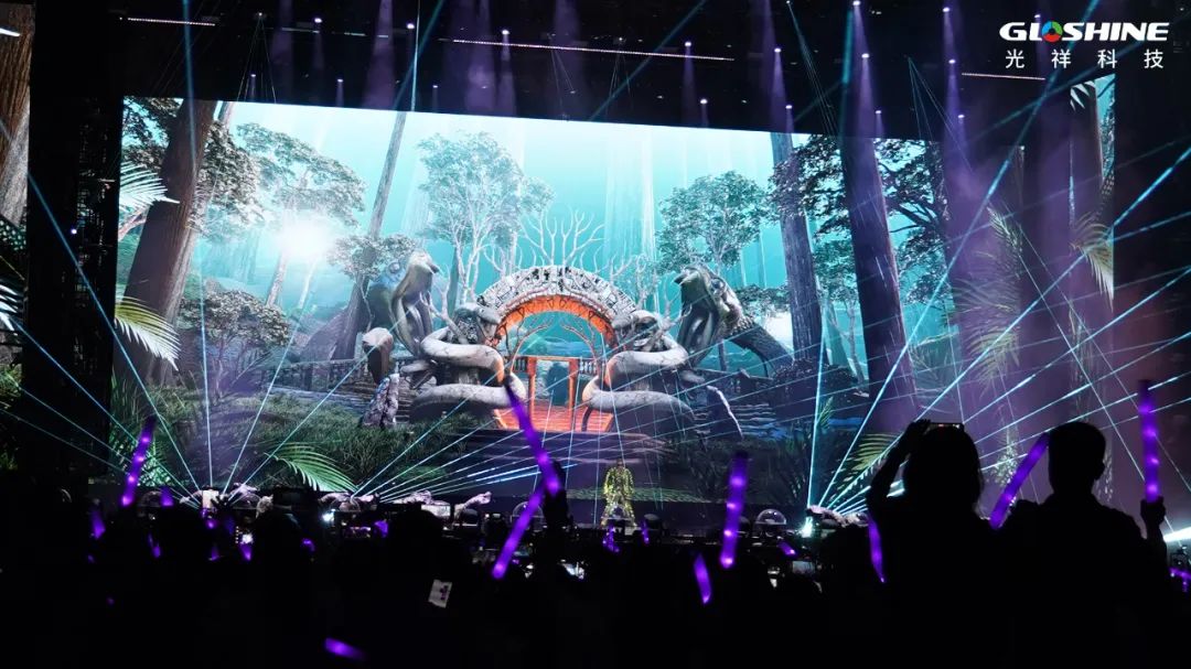 這是由光祥VA系列黑燈透明屏帶來的超感觀視覺享受。它以超輕薄、全防水、高通透率、高穩定性、高還原度稱霸舞臺,自2019年亞洲文化嘉年華起,廣泛應用于各大戶內外舞臺、展覽展示等,今年就有近300場明星演唱會使用了VA大屏。