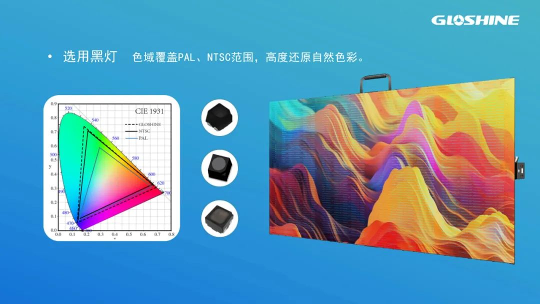 選用優質黑燈,色域覆蓋PAL、NTSC范圍,色彩對比度高,高度還原自然色彩。同時選用黑色面罩,PCB墨色均勻,整體顯示效果更佳。