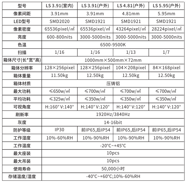LS系列,突破了LED顯示屏箱體工業設計的束縛,開創了后來者追逐的“經典”;500mm*1000mm箱體采用全黑電泳工藝,安裝快捷,效率倍增;箱體涵蓋直角與斜角,可實現多種內外弧的拼接;箱體連接件采用高強度金屬材質,精度高,堅固耐用;模組支持前后維護;電源后蓋搭扣鎖設計,拆卸無需工具,維護更便捷。