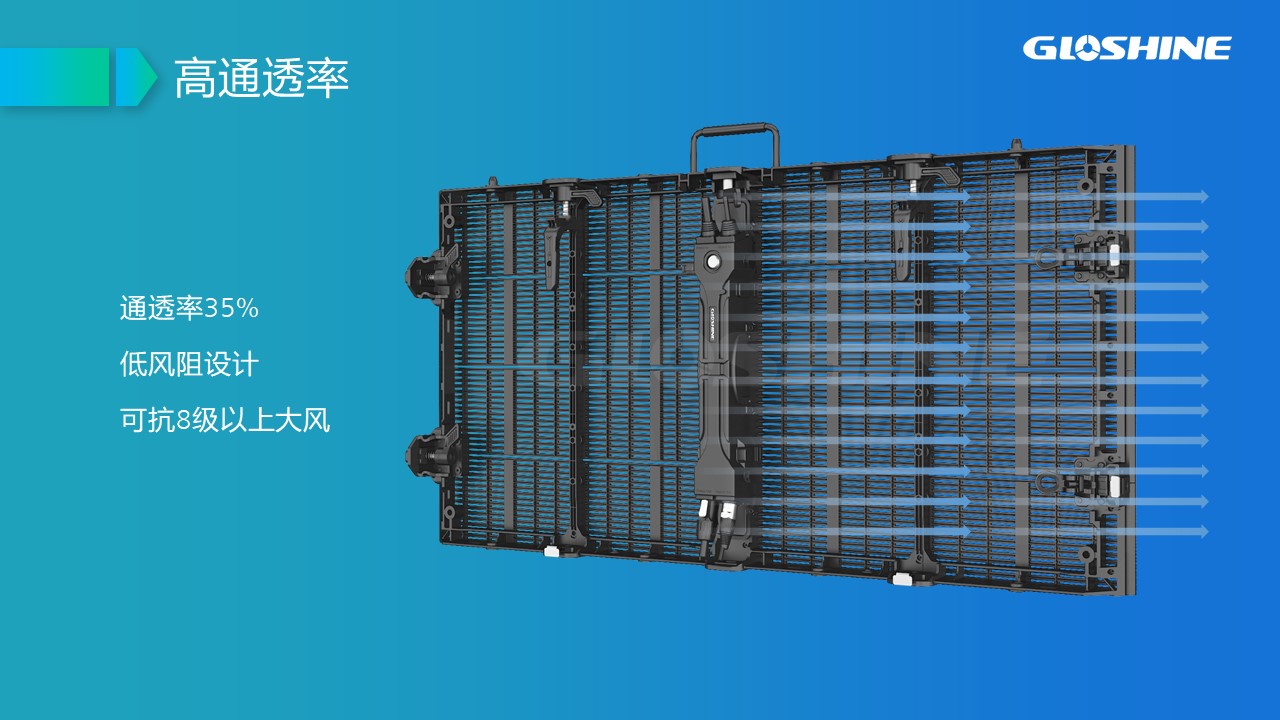 可拼弧度±10°;支持90°拼接;戶內(nèi)租賃及固裝、吊裝;黑燈高亮;高通透率;超輕超薄;抗風(fēng)能力強(qiáng),可抗8級(jí)以上大風(fēng);LED納米鍍層防護(hù);面罩設(shè)計(jì),解決PCB墨色不均勻問(wèn)題;后蓋一體化設(shè)計(jì)。