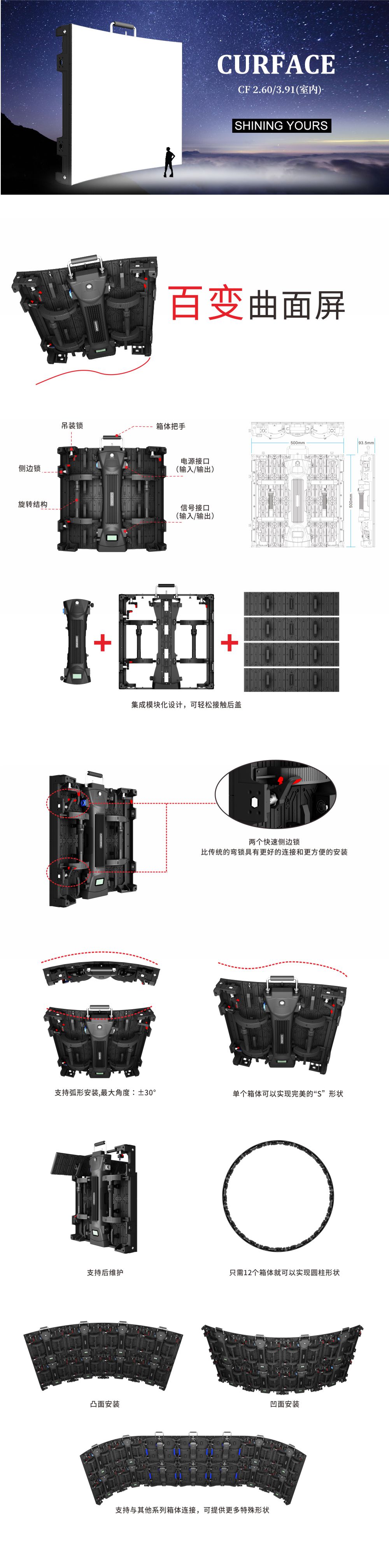 CF系列,集成模塊化設計,快速側邊鎖;支持弧形安裝,最大角度:±30°;單個箱體可以實現完美的"S"形狀,支持后維護。