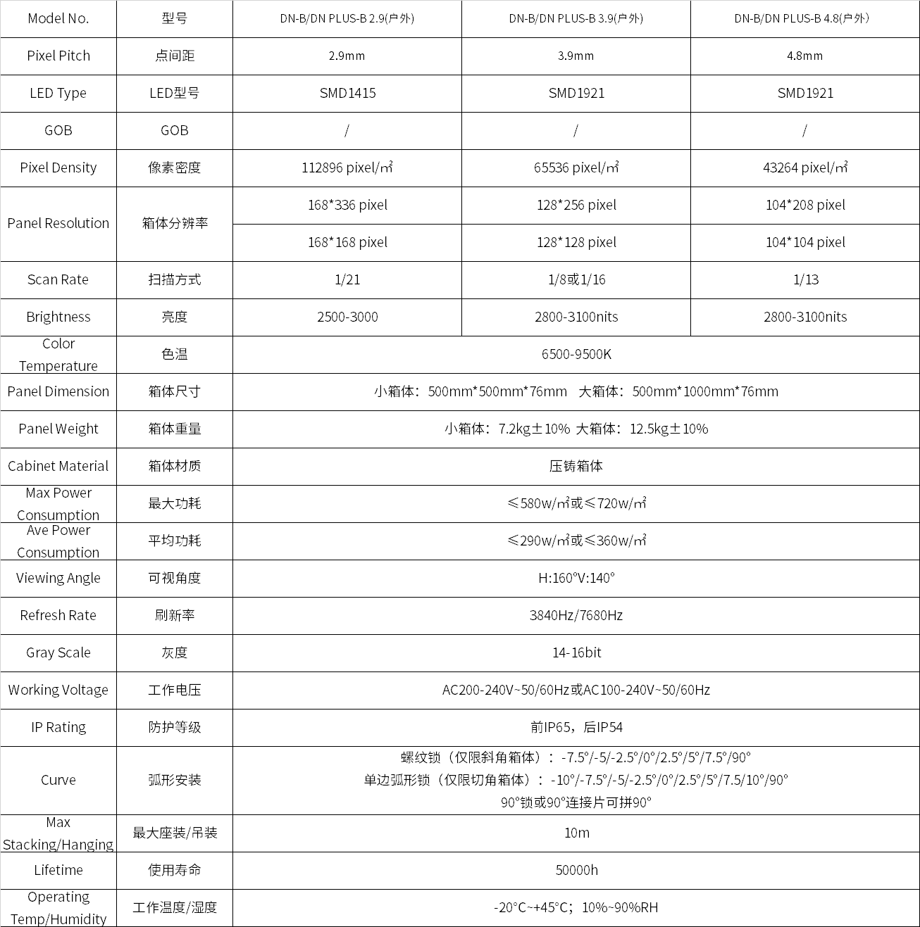 DN系列戶外高清LED顯示屏,超輕超薄箱體、經典工業設計、快速安裝維護、造型豐富多樣,支持直角/立柱/弧形等。